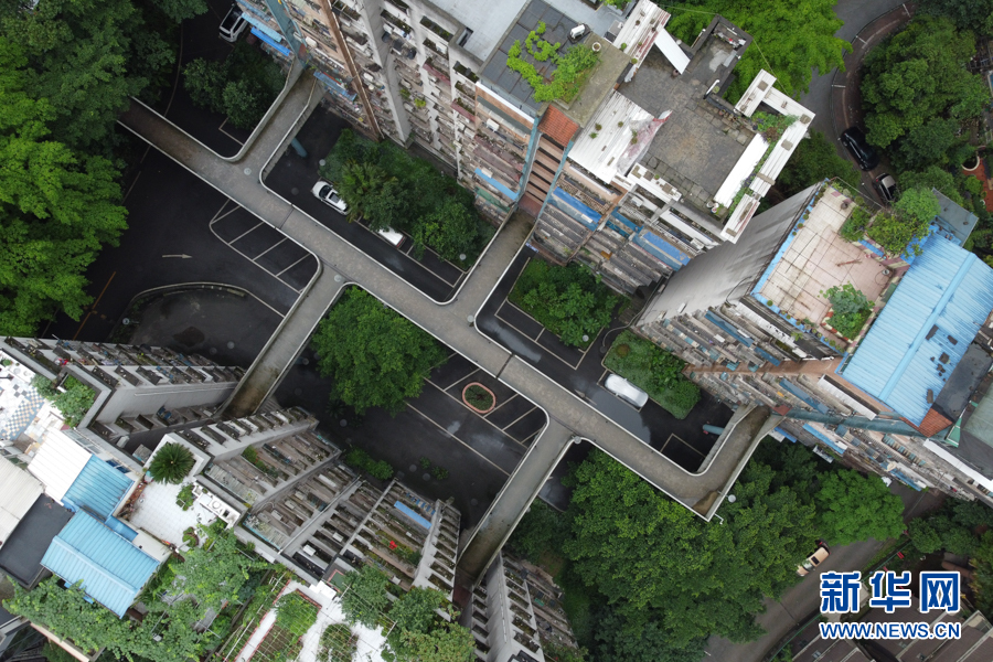 繼輕軌穿樓、高鐵穿樓、“貓頭鷹”立交橋之后,重慶又一建筑走紅網絡。近日,有網友發現,重慶渝中區一個老小區幾棟居民樓的4樓中間,建起了連接各個單元的空中走廊,居民出入猶如空中漫步。新華網 耿駿宇 攝
