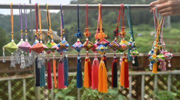 9月25日,在刚果(金)首都金沙萨,来自中国的婺剧演员在后台整理戏服。