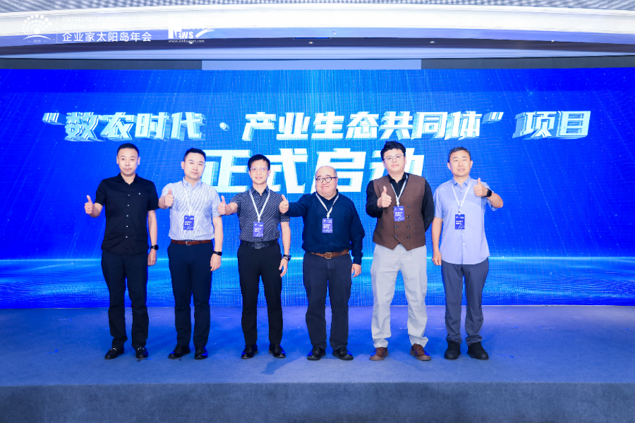 图为“数农时代·产业生态共同体”项目启动仪式。新华网融媒体未来研究院院长杨溟(右三)、朗毅科技总裁张智(左三)、宝杰富硒科技总裁罗润发(右二)、中国农业科学院乡村规划研究与咨询中心李伟(左二)、谷酷文化董事长郭承志(右一)、美兰德总经理周翔宇(左一)共同发布。新华网发