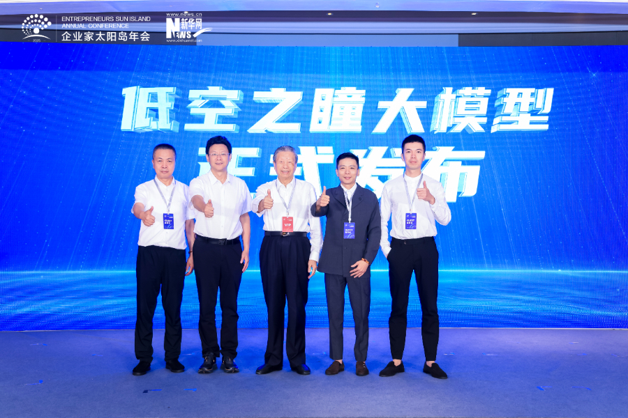 图为“低空之瞳”大模型发布仪式。中国工程院院士、中国航空学会副理事长刘大响(左三),新华网党委书记、董事长储学军(左二),瑞森网安董事长林少鹏(右二),广东南方应急管理研究院执行院长王文杰(左一),视造智能总经理林斌(右一)共同发布。新华网发