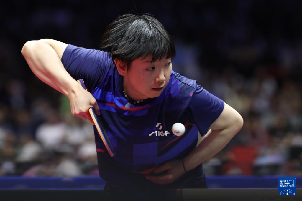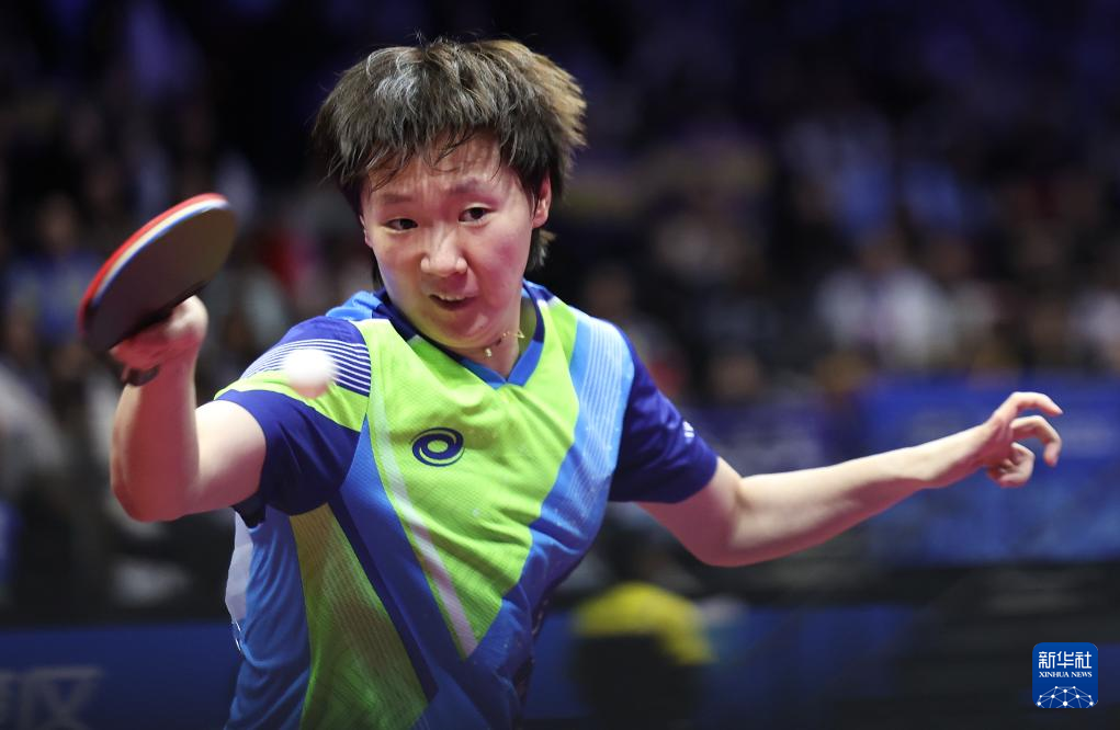 11月16日,黑龙江队选手王曼昱在比赛中回球。