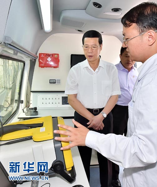 ??? 6月5日,中共中央政治局常委、國(guó)務(wù)院副總理張高麗到中國(guó)環(huán)境科學(xué)研究院和中國(guó)環(huán)境監(jiān)測(cè)總站調(diào)研。這是張高麗在水質(zhì)應(yīng)急監(jiān)測(cè)車上了解水質(zhì)監(jiān)測(cè)預(yù)警工作情況。新華社記者 李濤 攝