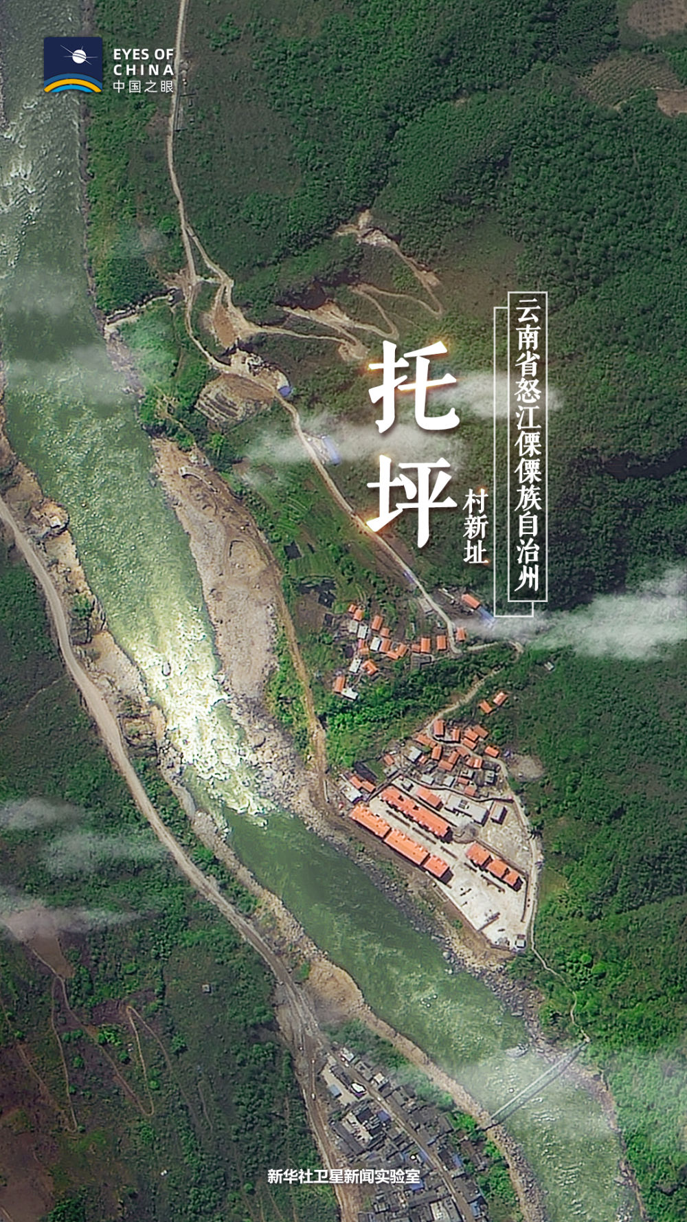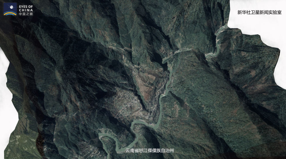 ↑從衛星可以看到,綠樹環繞的托坪村新址位于在怒江邊上。