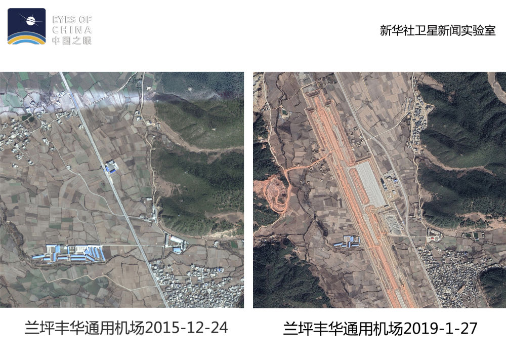 ↑衛星記錄了蘭坪豐華通用機場從無到有的建設過程。