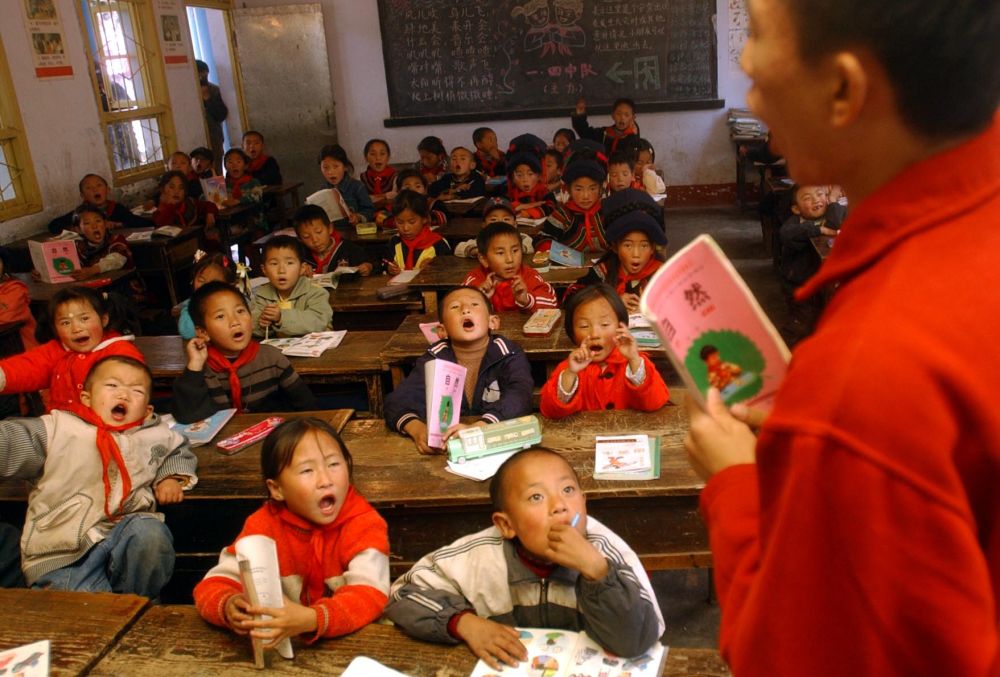 ↑ 這是四川大涼山彝族自治州昭覺縣一所縣城小學的孩子們正在上課(2004年11月8日拍攝)