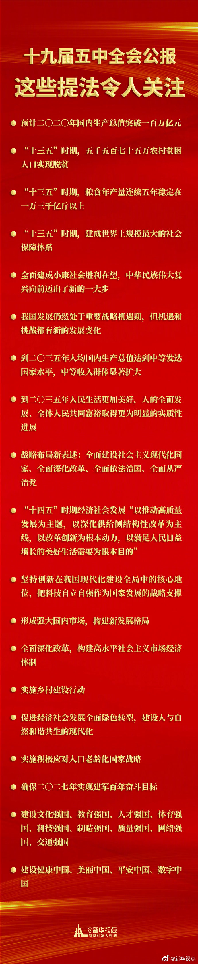 十九屆五中全會公報中,這些提法令人關注-新華網