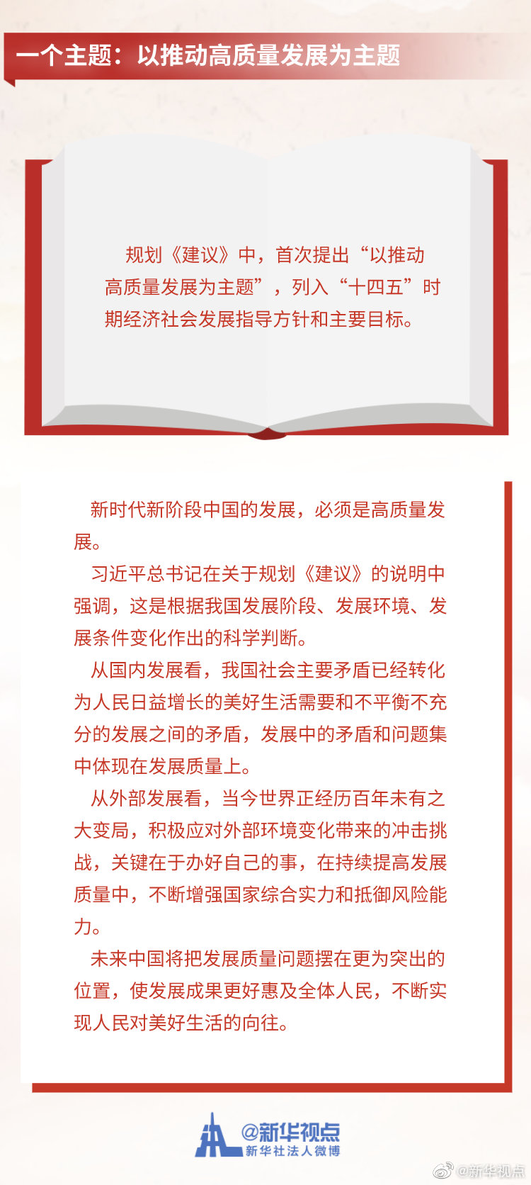 《中共中央關于制定國民經濟和社會發展第十四個五年規劃和二〇三五年遠景目標的建議》3日公布。這份長約2萬字的文件,為未來5年及15年的中國發展勾勒藍圖。記者梳理出規劃《建議》中的“一二三四五”,為觀察中國發展走向提供一個獨特視角。