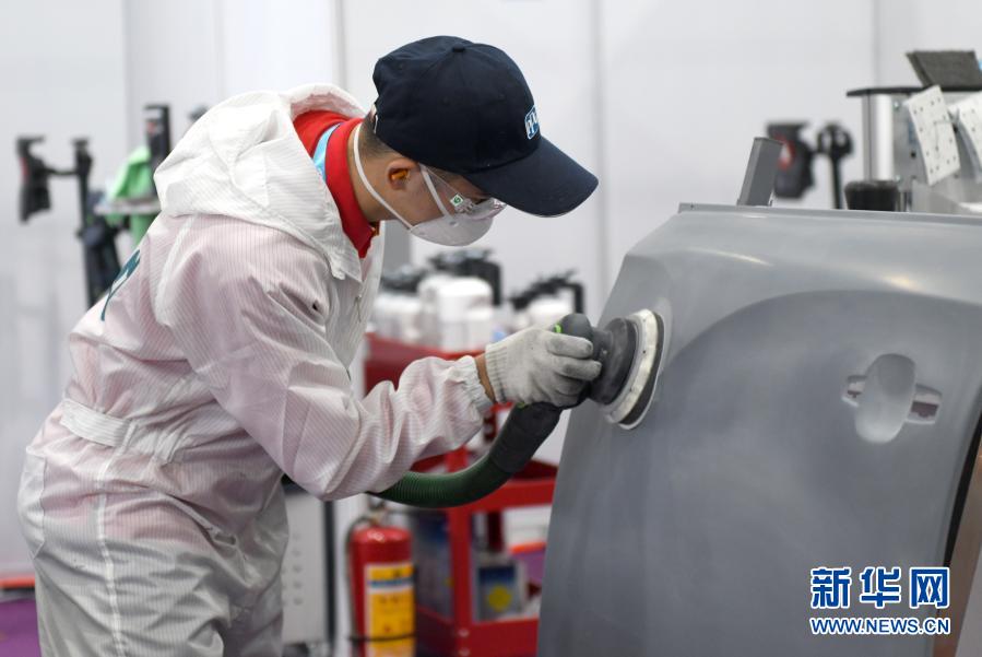 選手在汽車(chē)噴漆項(xiàng)目比賽中(12月11日攝)。新華社記者 盧漢欣 攝