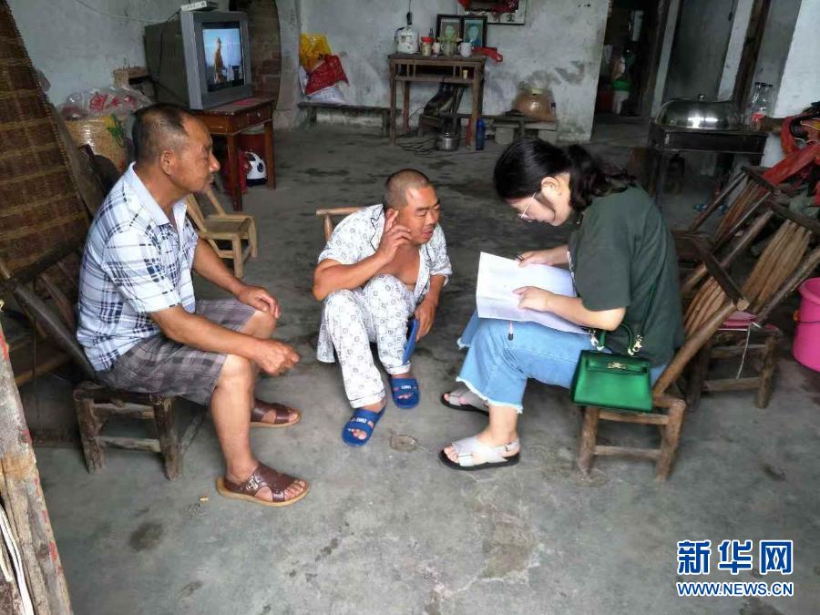 吳應(yīng)譜(左)在走訪貧困戶(資料照片)。新華社發(fā)(修水縣委宣傳部供圖)