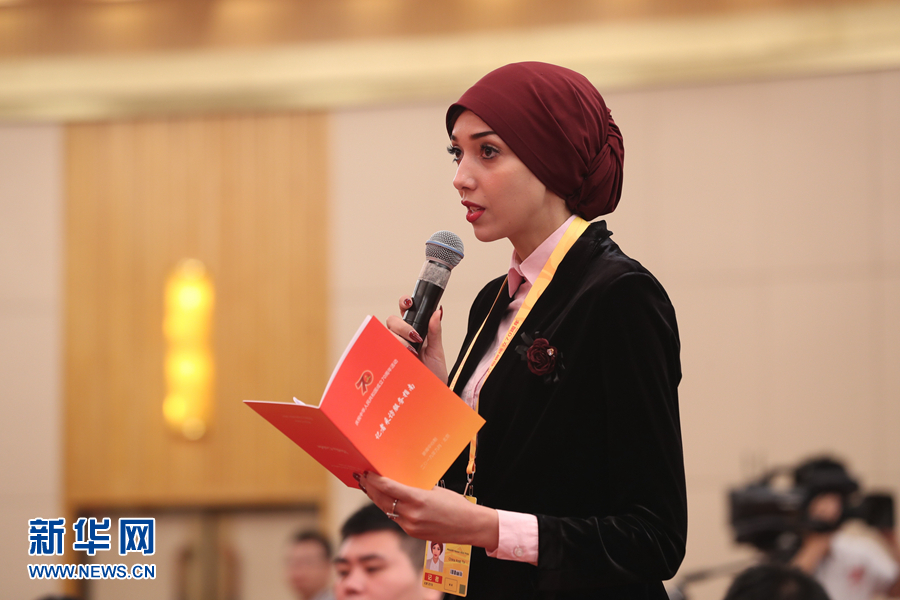 9月24日,慶祝中華人民共和國成立70周年活動新聞中心在北京梅地亞中心二層新聞發(fā)布廳舉辦第一場專題集體采訪。圖為境外媒體記者提問。新華網(wǎng)記者 郭小天 攝