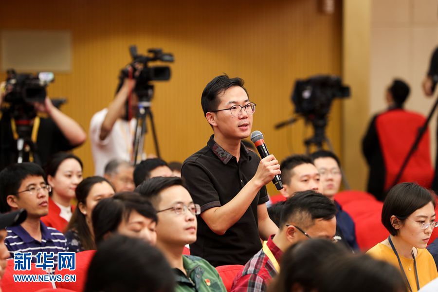 9月25日,慶祝中華人民共和國成立70周年活動新聞中心在北京梅地亞中心二層新聞發布廳舉辦第二場專題集體采訪活動。圖為媒體記者提問。新華網記者 焦鵬 攝