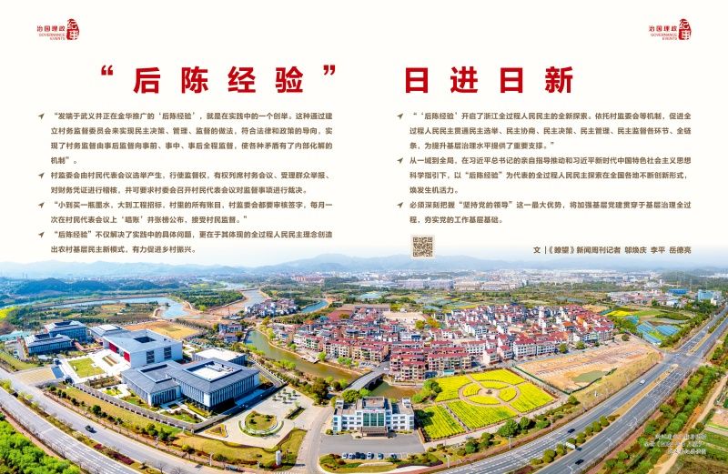 后陈村,曾经默默无闻的浙江小村落,因开创农村基层民主监督先河的“后陈经验”而闻名全国。二十年来,“后陈经验”不断丰富发展,是我国全过程人民民主实践日进日新的典型。