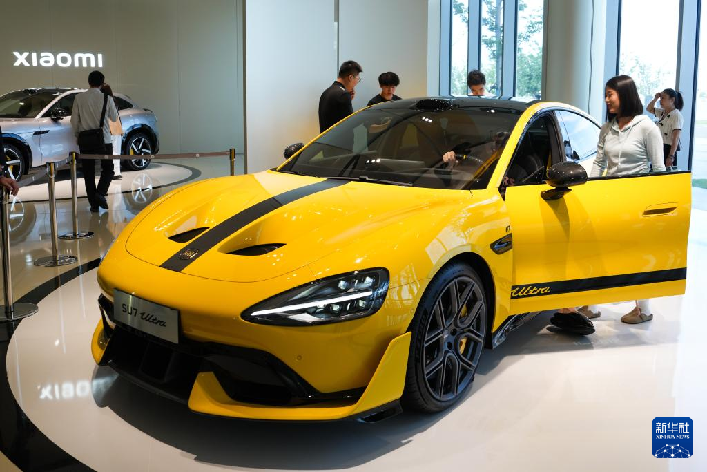 6月16日,参观者在北京小米汽车工厂的体验中心了解SU7 Ultra汽车。