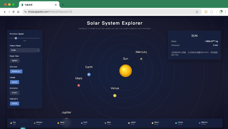 作为国内专为教师研发的AI专业工具,“飞象老师”在上线时机与功能设计上均展现出与政策的高度契合性。其摒弃通用AI工具的泛化功能,聚焦教师教学备课核心场景,是实现“一句话生成专业级交互教学动画与游戏化课件”的教师专属工具,填补了政策引导下教师个性化AI辅助工具市场的空白。