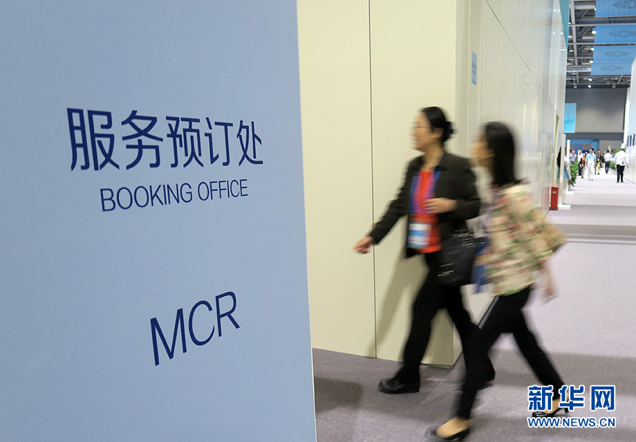 9月4日上午,金磚國家領導人非正式會晤在浙江杭州舉行。當日,G20峰會新聞中心一派繁忙景象。新華網記者 陳競超 攝