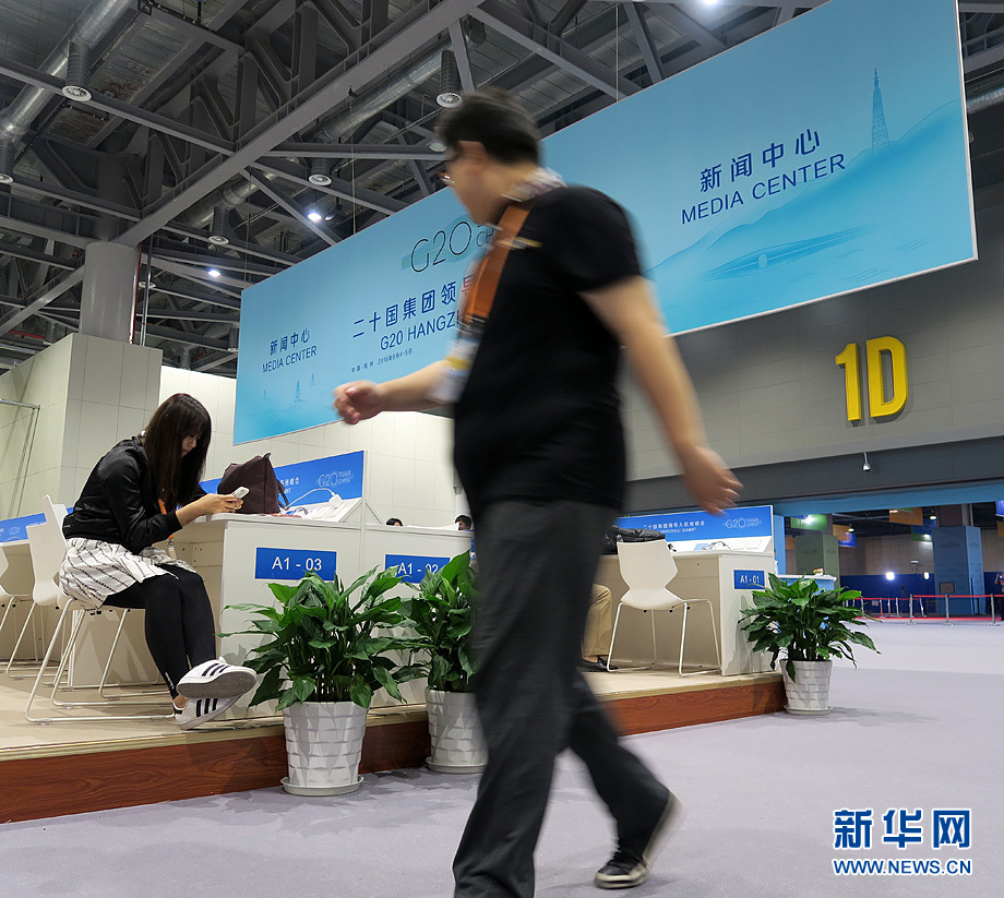9月4日上午,金磚國家領導人非正式會晤在浙江杭州舉行。當日,G20峰會新聞中心一派繁忙景象。新華網記者 陳競超 攝
