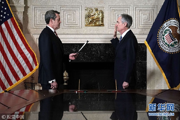 當(dāng)?shù)貢r間2018年2月5日,美國華盛頓,剛過完65歲生日的鮑威爾正式宣誓就職,成為第16任美聯(lián)儲主席。(圖片來源:視覺中國)