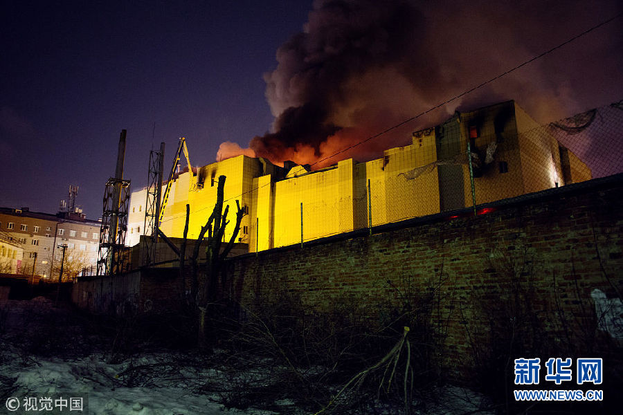 當地時間2018年3月25日,俄羅斯西西伯利亞南部城市克麥羅沃一家購物中心發生重大火災。據俄緊急情況部26日發布的消息,大火已造成64人死亡。(圖片來源:視覺中國)