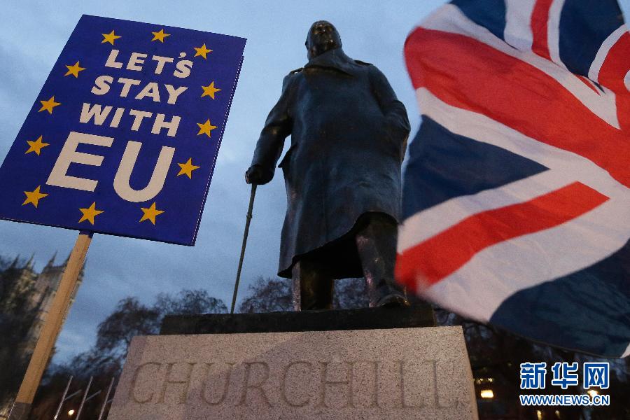 1月15日,在英國(guó)倫敦,民眾在議會(huì)大廈外的英國(guó)前首相丘吉爾雕像前參加集會(huì)。 英國(guó)議會(huì)下院15日投票否決了此前英國(guó)政府與歐盟達(dá)成的“脫歐”協(xié)議。在經(jīng)過(guò)5天辯論后,英國(guó)議會(huì)下院15日以432票反對(duì)、202票支持的投票結(jié)果否決了“脫歐”協(xié)議。 新華社發(fā)(蒂姆·愛(ài)爾蘭攝)