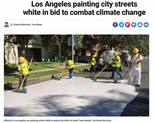 常見的黑色柏油馬路很容易吸收熱量,加劇熱島效應。近年來,美國洛杉磯就想出了新法子來降低柏油馬路的加熱作用:使用一種特殊材料,給馬路“穿上”一件“白色外套”。