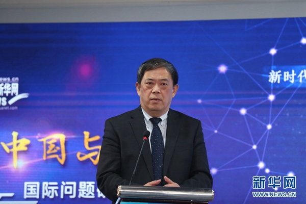 1月7日,新華網第十屆“縱論天下”國際問題研討會成功舉行。圖為中國國際問題研究院美國研究所所長滕建群在進行主旨演講。新華網 李清 攝