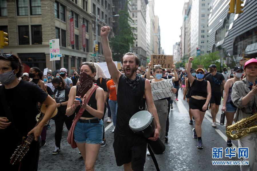 6月6日,人們在美國紐約街頭抗議。 新華社發(郭克 攝)