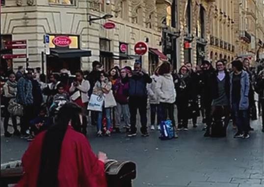 中國姑娘彭靜旋,為讓更多人了解中國傳統音樂,在法國街頭演奏古箏,吸引了眾多外國友人駐足觀看。