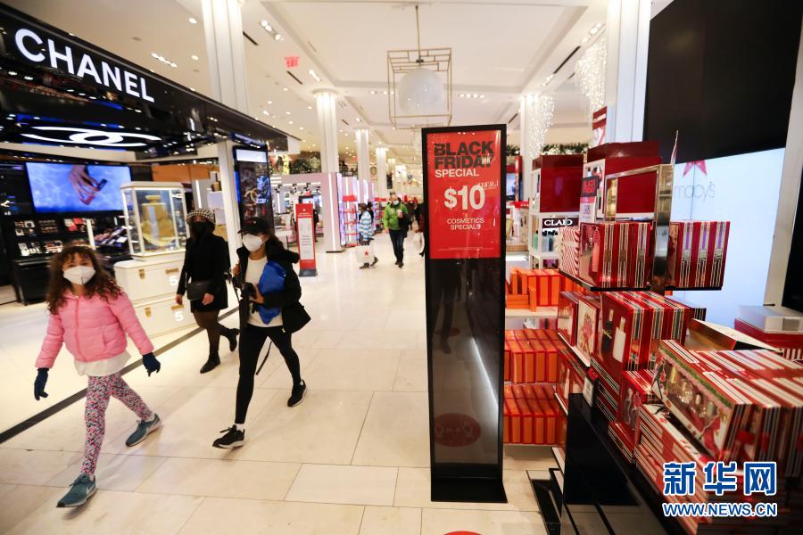 受新冠疫情影響,今年美國“黑色星期五”購物促銷日前往商店購物的人數(shù)較往年減少。