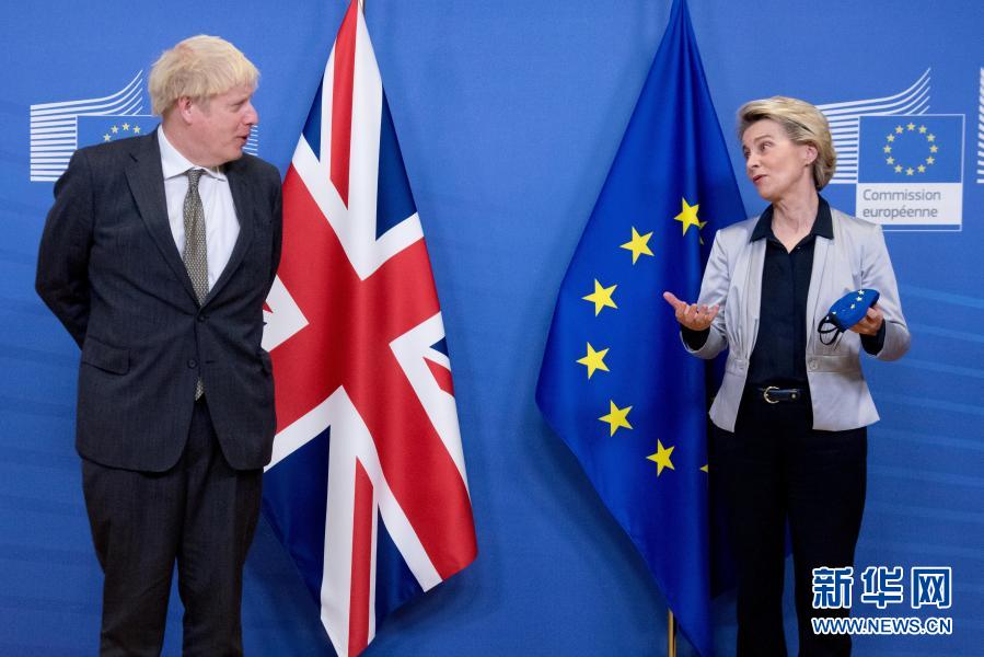 2020年12月9日,英國首相約翰遜(左)與歐盟委員會主席馮德萊恩抵達比利時布魯塞爾的歐盟總部,準備進行會晤。新華社發(歐盟供圖)
