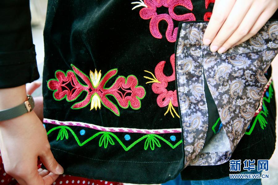 12月24日,一名女子在吉爾吉斯斯坦首都比什凱克舉行的裙袍大賽上展示裙袍。新華社發(羅曼 攝)
