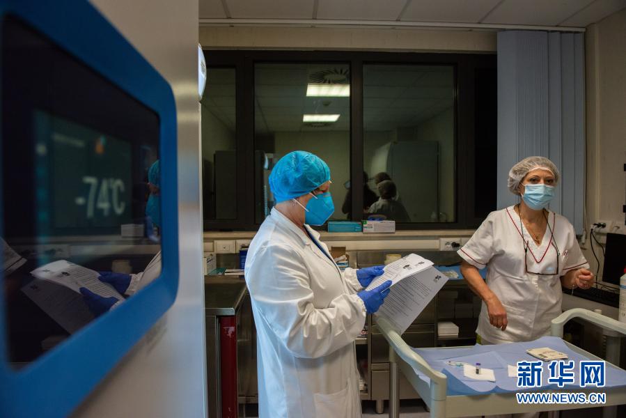 12月27日,在羅馬尼亞首都布加勒斯特一家傳染病醫院,醫務人員向媒體展示新冠疫苗。新華社發(克里斯泰爾攝)