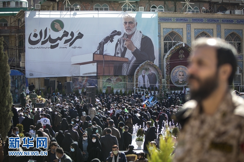 2021年1月2日,人們在位于伊朗克爾曼的伊斯蘭革命衛隊下屬“圣城旅”指揮官蘇萊曼尼墓附近參加他的遇難周年悼念活動。2020年1月3日,美國在伊拉克首都巴格達發動襲擊,殺死伊朗伊斯蘭革命衛隊下屬“圣城旅”指揮官蘇萊曼尼等人。新華社發(艾哈邁德·哈拉比薩斯攝)