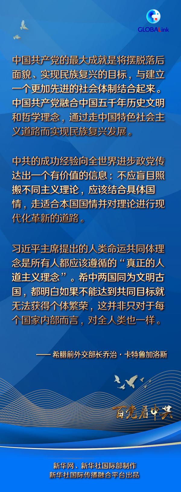在中共百年華誕之際,卡特魯加洛斯向中國共產(chǎn)黨和中國人民送上祝福:“我相信中國人民取得的這些矚目成就還將繼續(xù)下去,相信中國共產(chǎn)黨的下一個百年能給中國人民帶來更加光明和美好的未來。”
