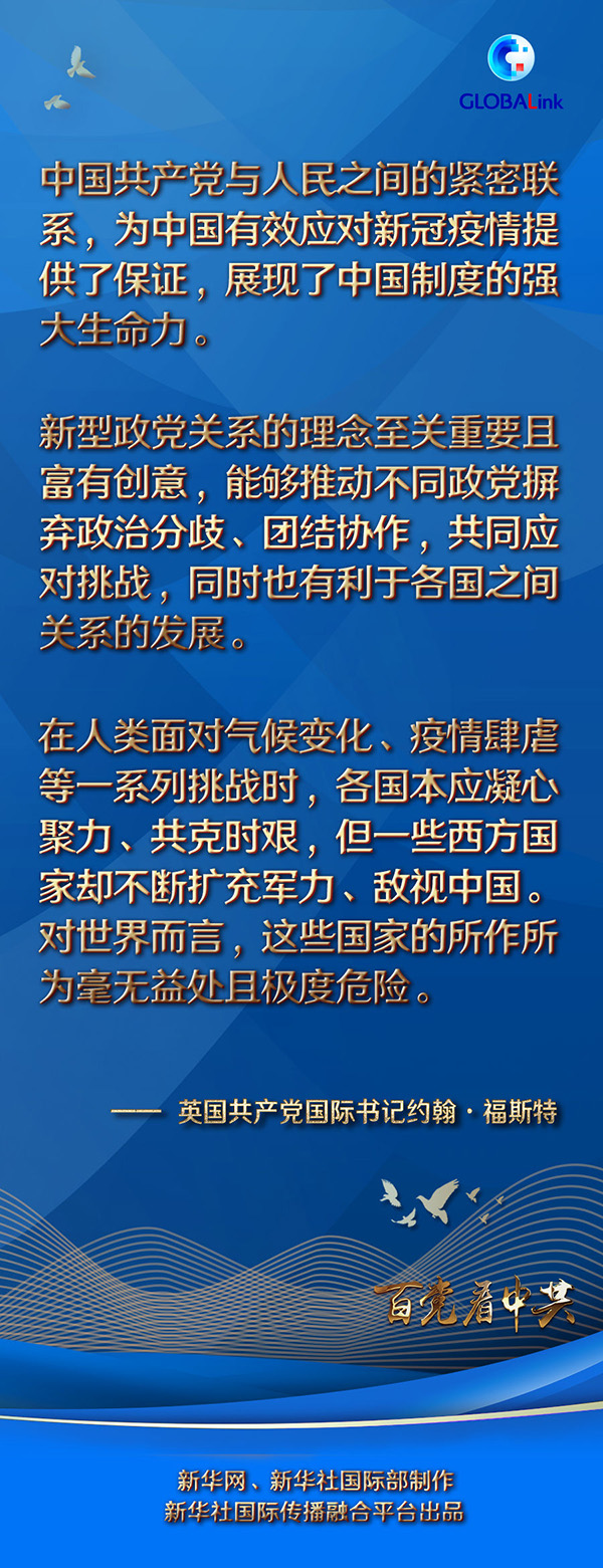 “中國(guó)共產(chǎn)黨與人民之間的緊密聯(lián)系,為中國(guó)有效應(yīng)對(duì)新冠疫情提供了保證,展現(xiàn)了中國(guó)制度的強(qiáng)大生命力。”福斯特日前通過視頻連線接受新華社記者采訪時(shí)說。